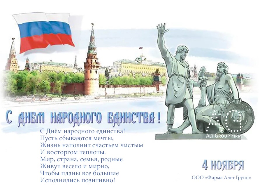 Новости День Народного Единства! 2 ноября, 2024 /АвторФирма Альт Групп / 341 / 0 С Денем Народного Единства!