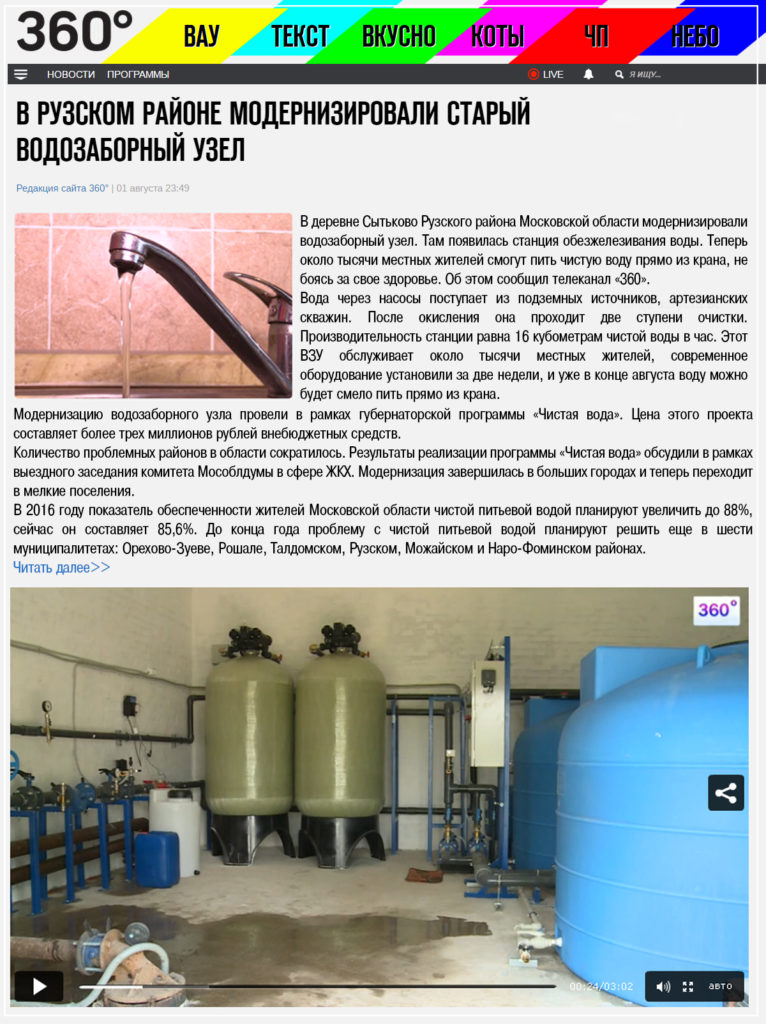 Система обезжелезивания и обеззараживания воды была доставлена в срок, в целости и сохранности. Качество воды соответствует заявленным требованиям спустя девять месяцев эксплуатации оборудования в непрерывном режиме.