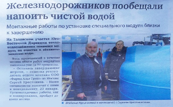 В 2020 году сотрудники ООО «Фирма Альт групп» произвели, смонтировали и запустили в эксплуатацию систему водоподготовки для нашей компании.