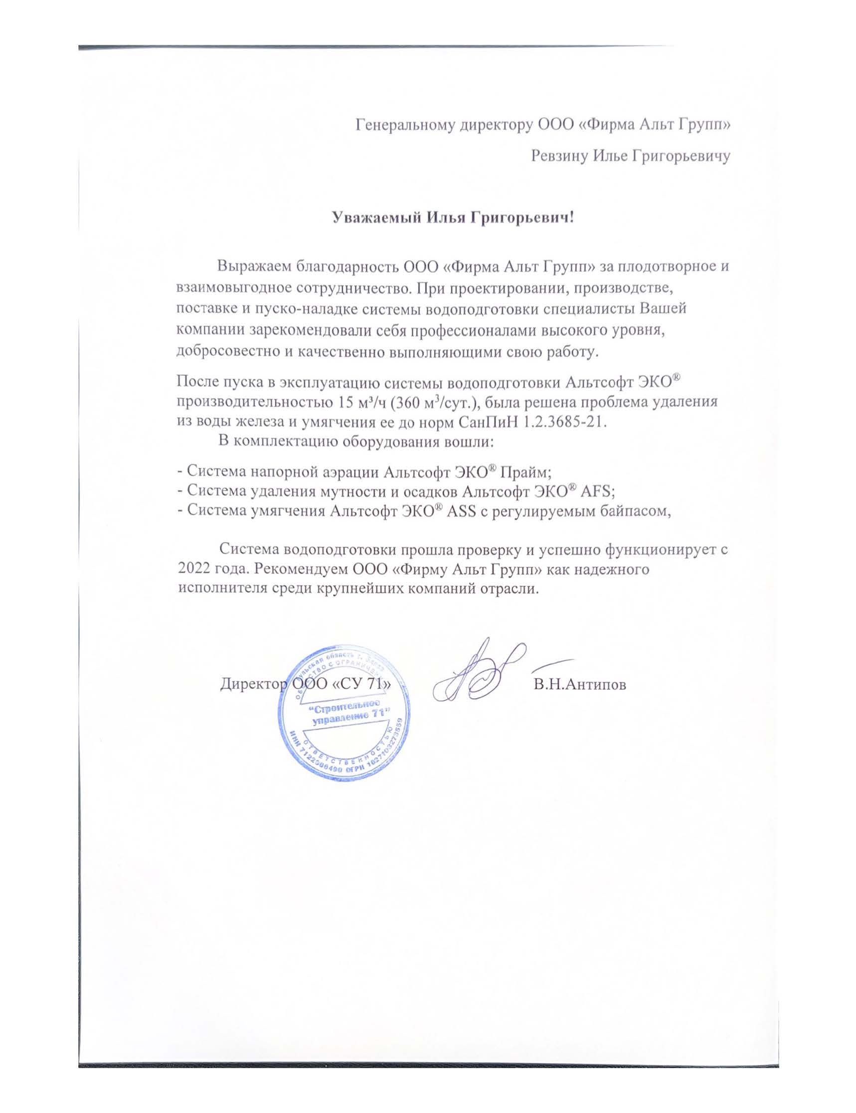 Несколько дней назад мы получили отзыв о нашей работе от ООО «СУ 71». Хотим с Вами разделить эту радостную новость.