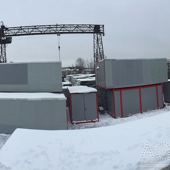 В корпус контейнера встраиваются: воздушные клапаны приточно-вытяжной вентиляции, двери, монтажные проёмы, выхлопной газоход и устройства наружного подключения внешних коммуникаций.