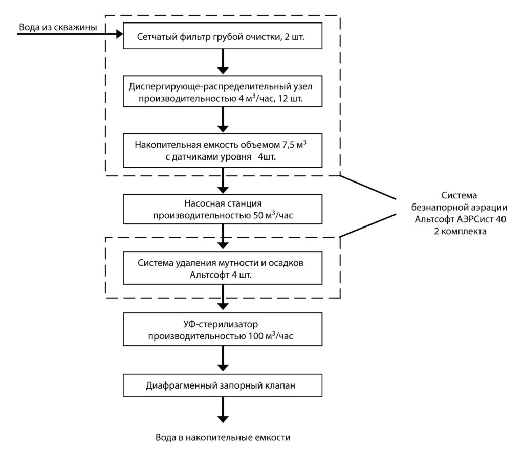 Обезжелезивание воды методом безнаорной аэрации для коттеджного поселока "Пестово"